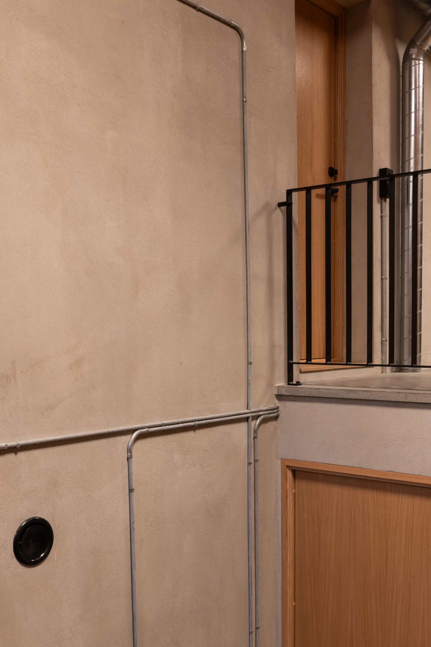 De tekniske installasjonene er utført med presisjon for å komplementere de stramme linjene i arkitekturen og de naturlige materialvalgene i eik og betong.